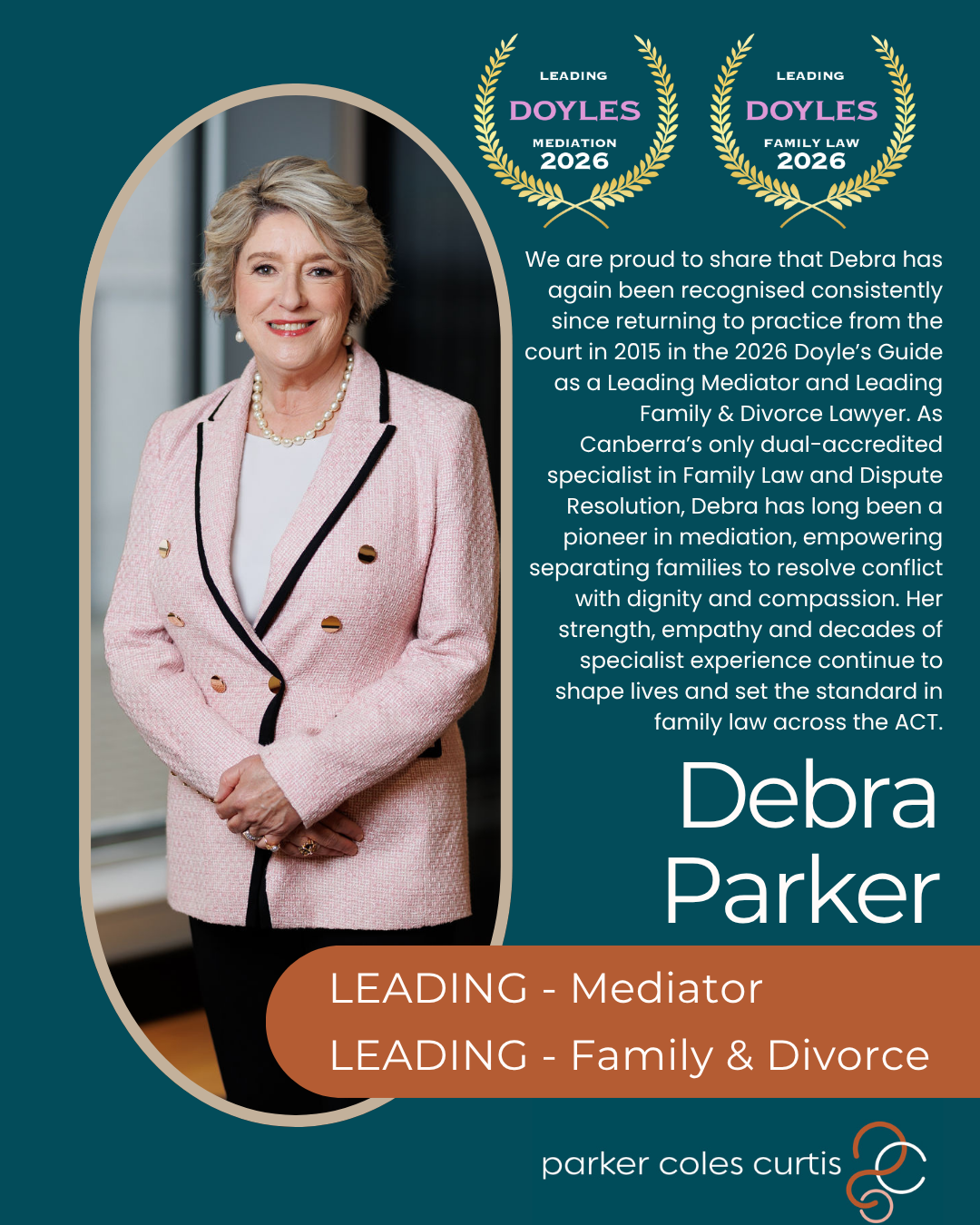 As Canberra’s only dual-accredited specialist in both Family Law and Dispute Resolution, Debra continues to lead with strength, empathy and innovation, shaping the future of family-focused conflict resolution.